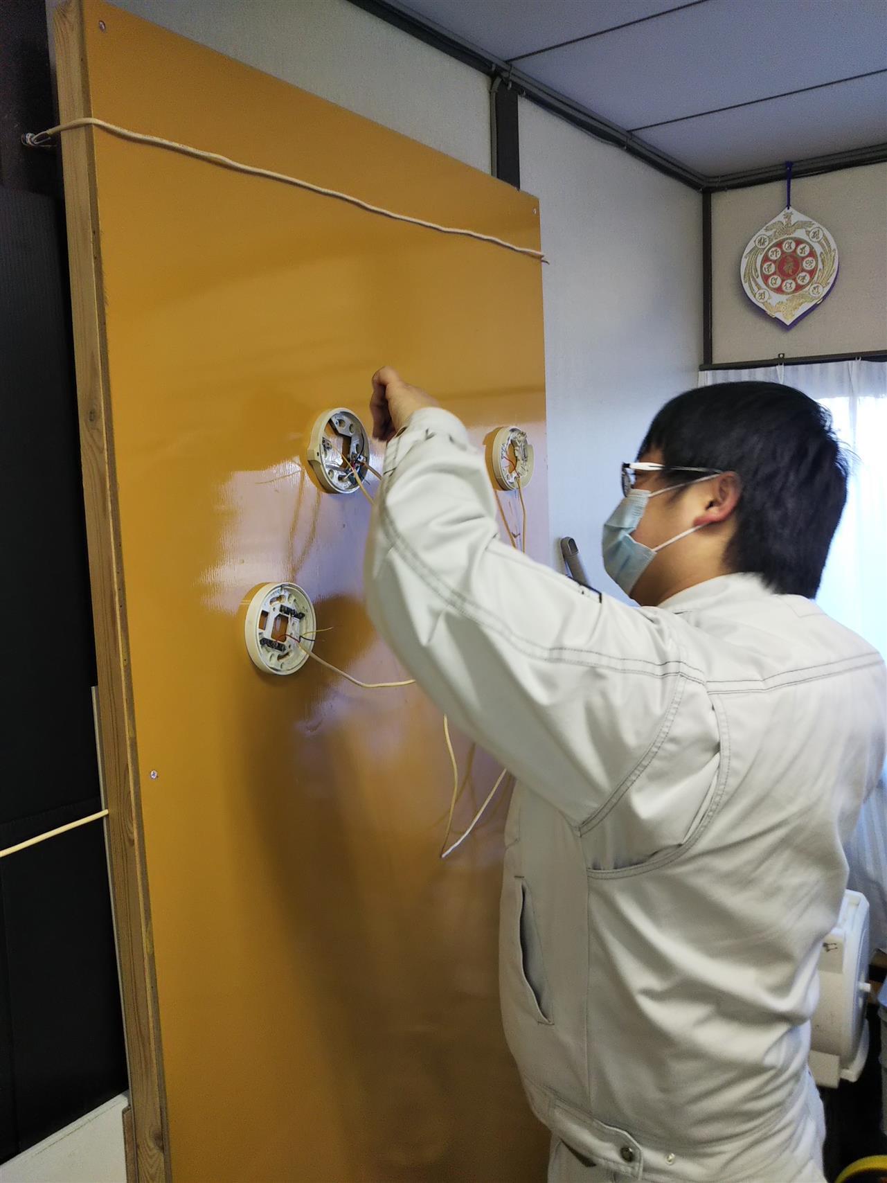 今日は比較的時間があったので、倉庫にて実際の機器を使用しての感知器増設工事実技講習を行いました。
