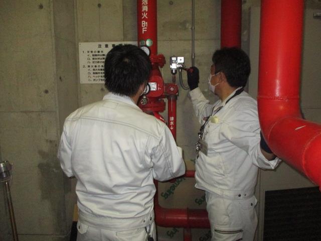 泡消火設備の流水検知装置(アラーム弁)の講習中です。