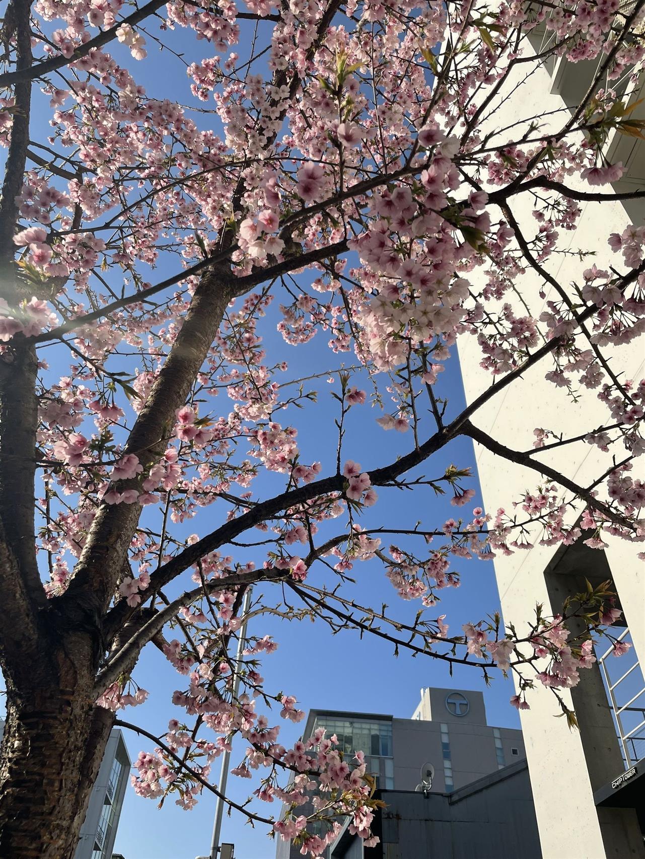 今朝、現場の前で見上げた空にきれいな花が咲いていました🌸(名前は忘れました💦)